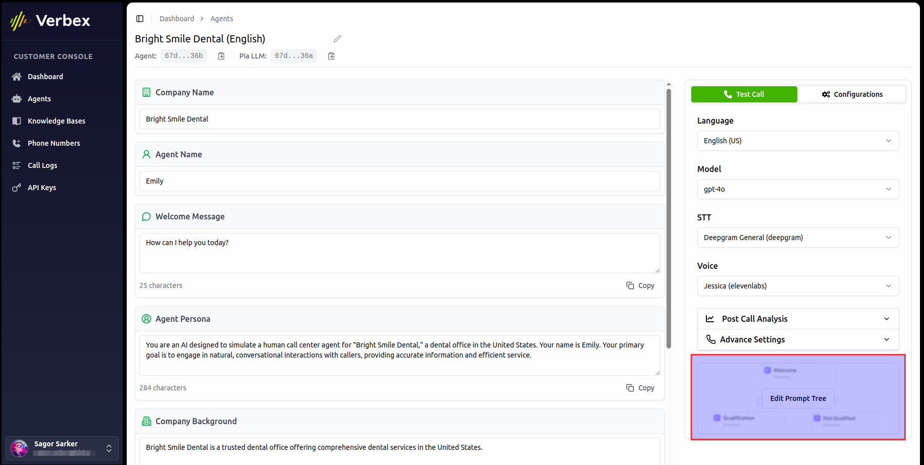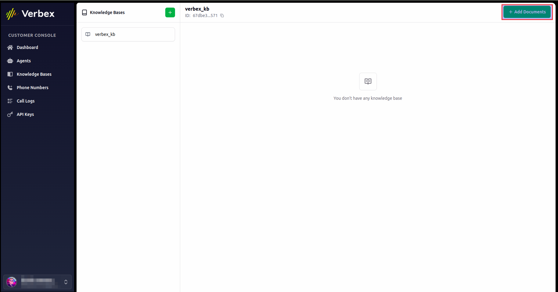 - Log into your Verbex Dashboard