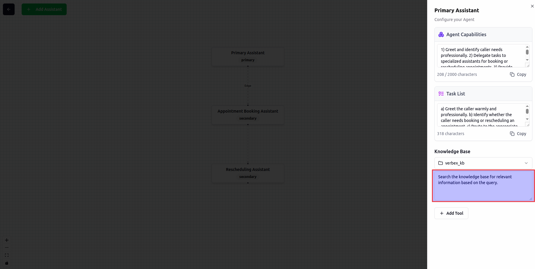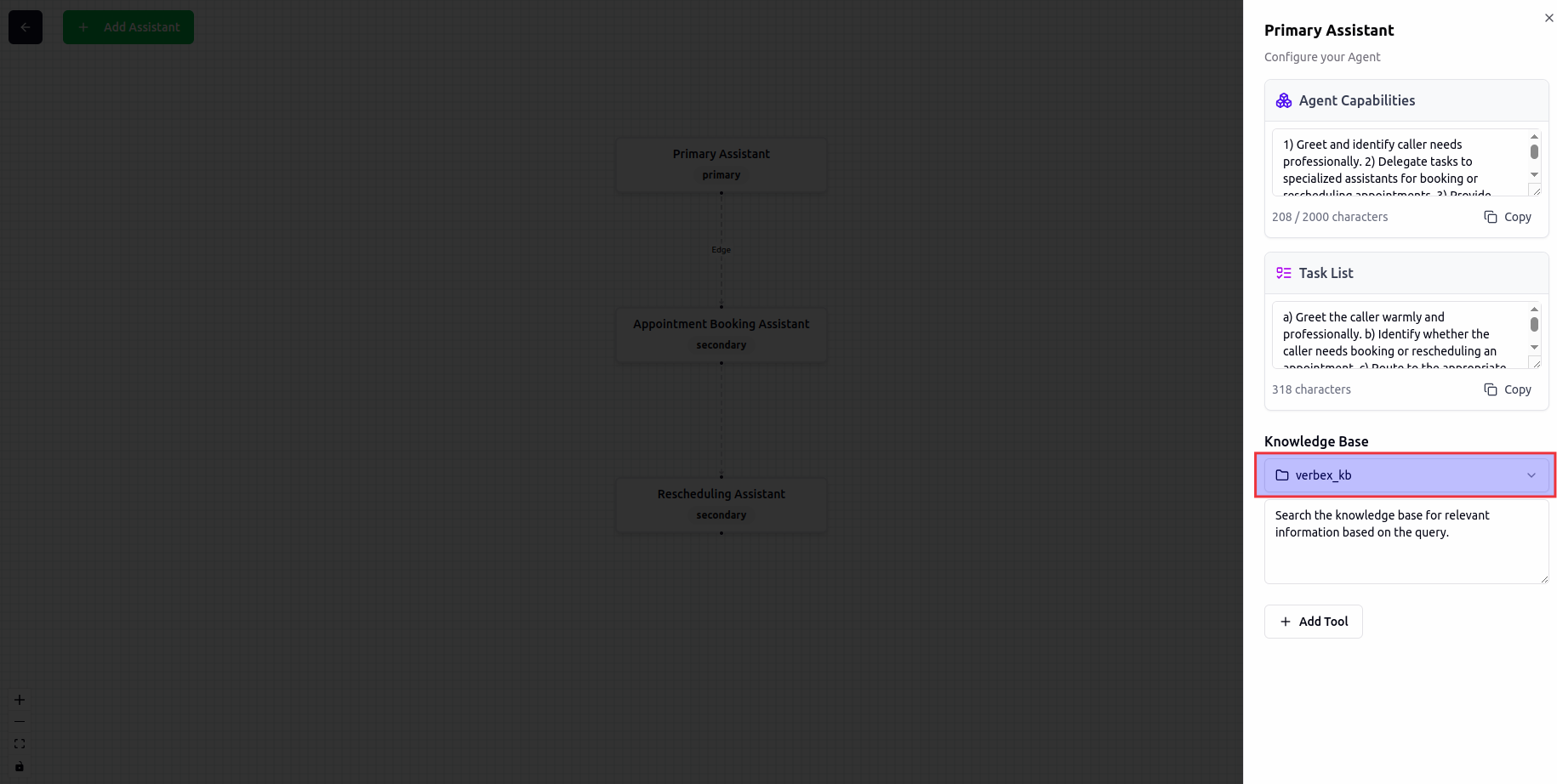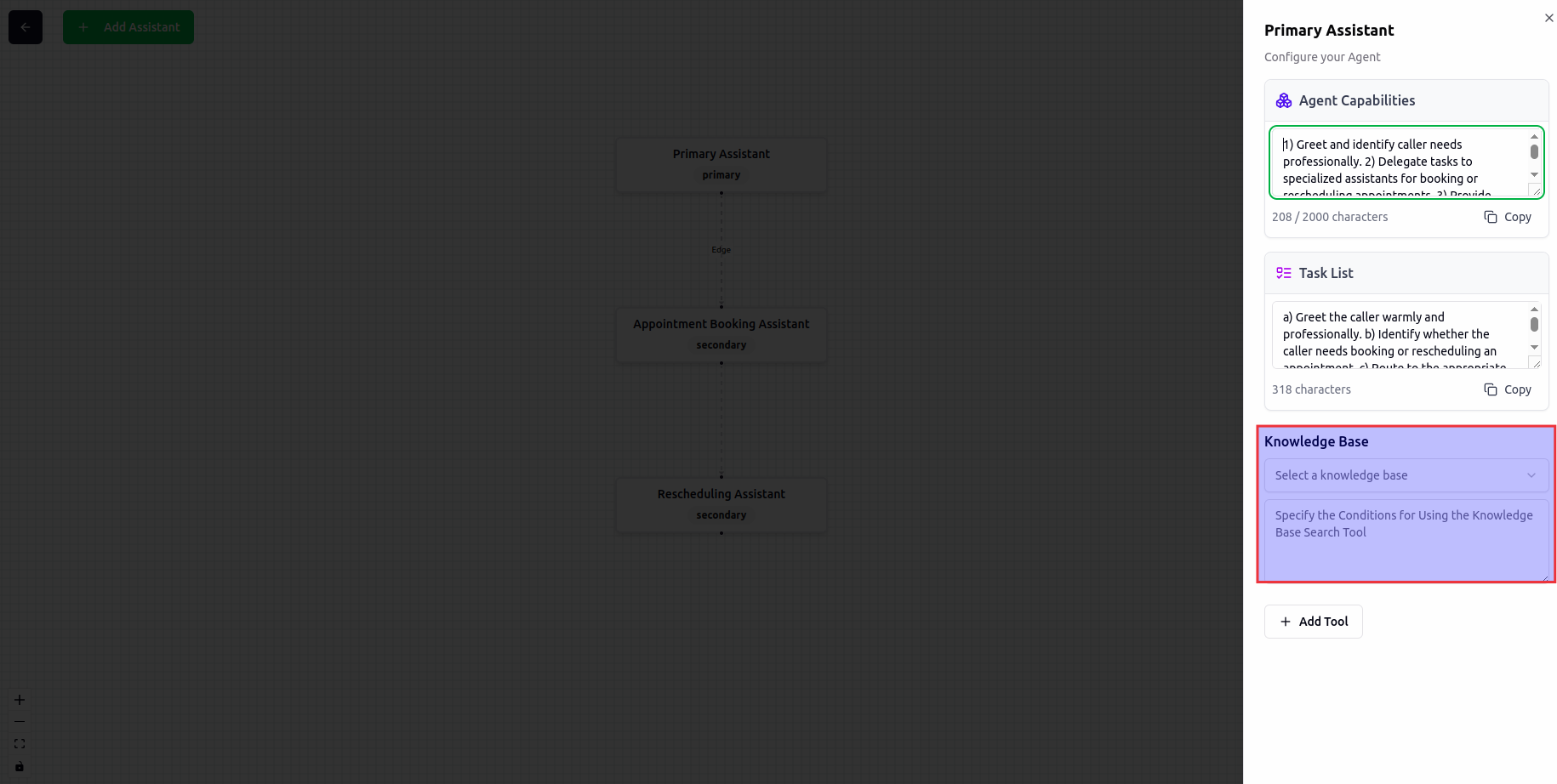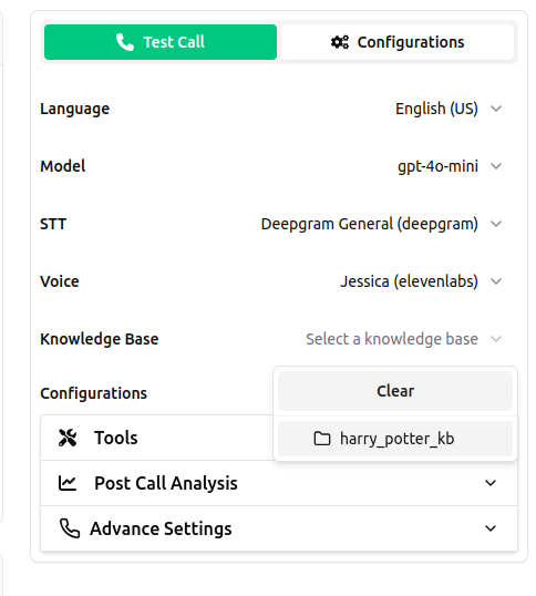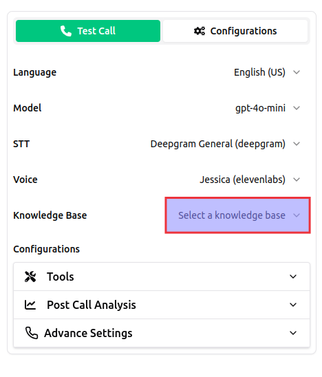 - Select and connect the knowledge base to your agent